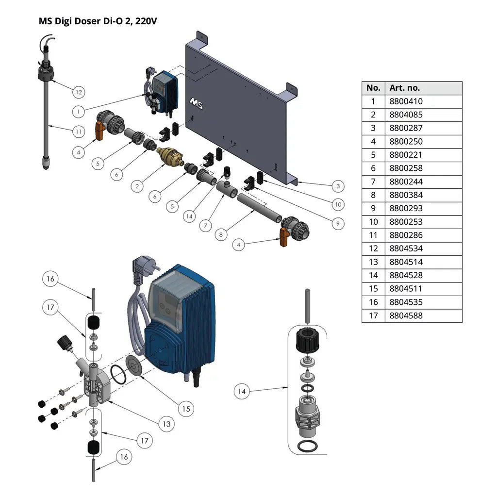 Digi Doser Di-O 2 is a dosing system to add Di-O-Clean into the drinking water system. The system is equipped with a digital membrane pump, that doses the right amount of Di-O-Clean in the water pipe based on the pulses of the water meter.