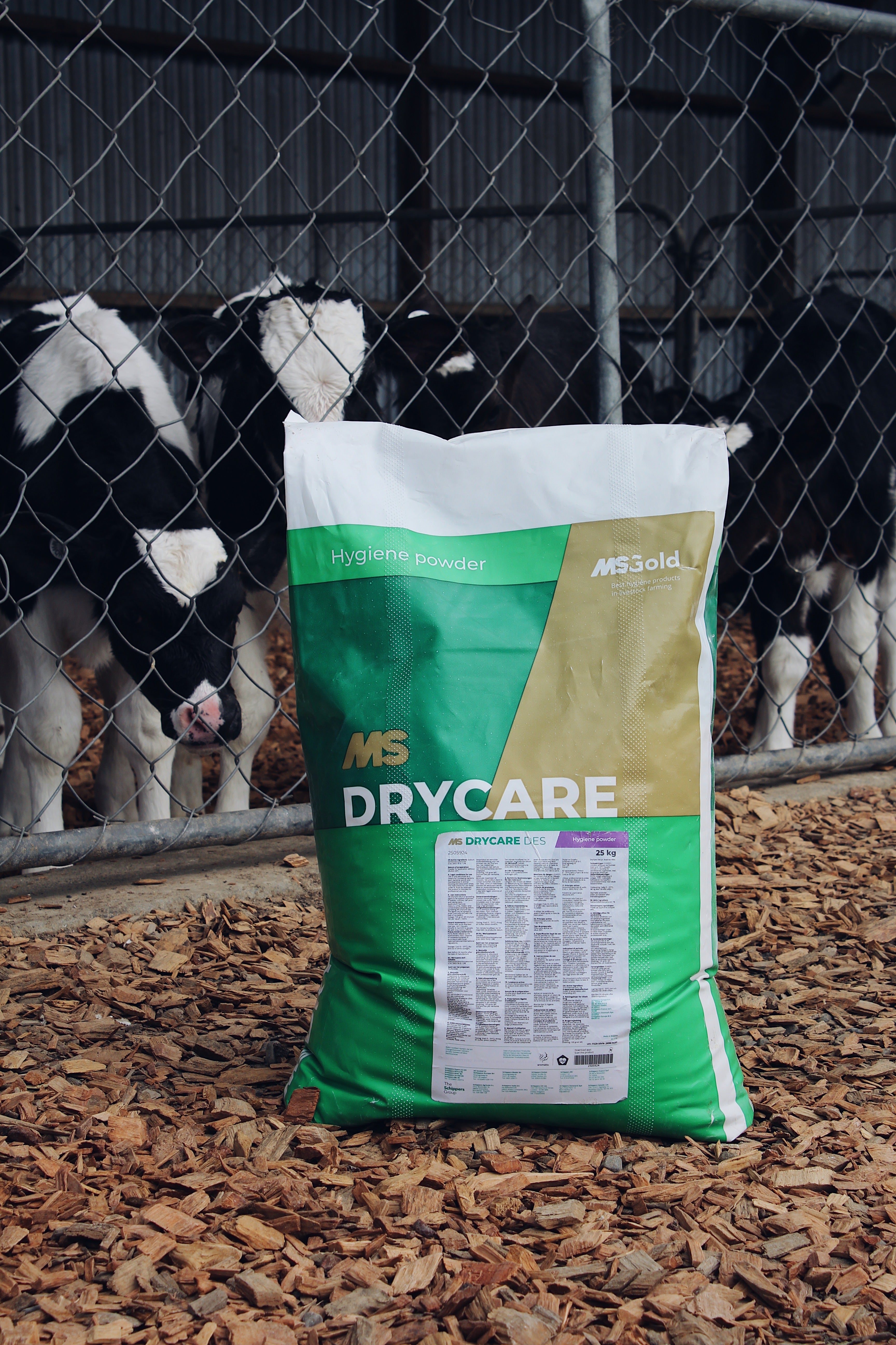 MS DryCare Des is a spreading agent to be applied undiluted in stables, cubicles, calf pens and calving pens.